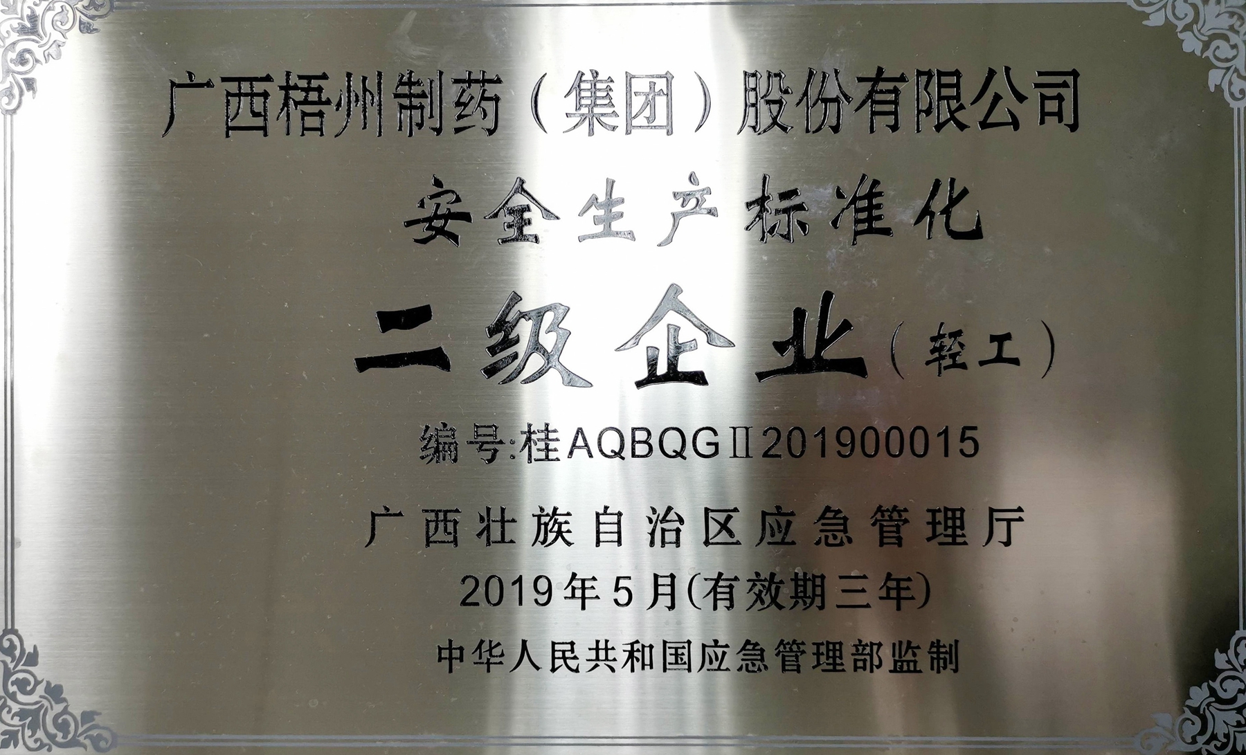 榮獲安全生產(chǎn)標準化二級企業(yè)(輕工)稱號