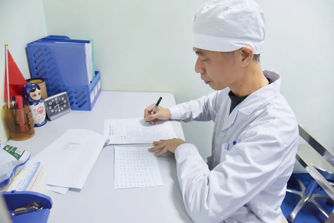 從細節(jié)看人品,這位被同事們尊稱“阿國師傅”的他,辦公桌面上各種書籍材料、業(yè)務規(guī)程、記錄文件永遠都是堆疊有序;中檢專用操作間里,各種檢測試劑、設備儀器嚴格按定置管理,擺放得整整齊齊;他書寫的記錄文件,字跡工整,方正有力,點橫撇捺,一絲不茍,岸然如一幅硬筆書法。
