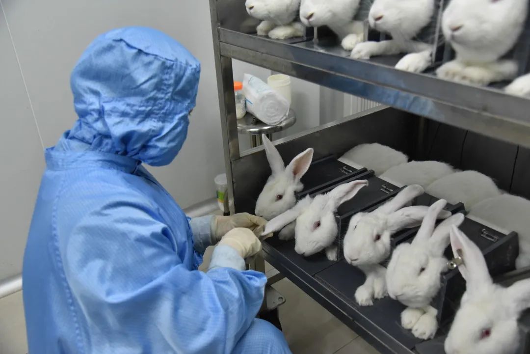 “小兔子乖乖快出來(lái)”每天早上9點(diǎn),馮偉玲都和其他同事一起,一邊在兔子耳邊喃喃細(xì)語(yǔ),一邊輕柔地將生長(zhǎng)室里的3只小白兔抓取出來(lái),移到另外的工作室。