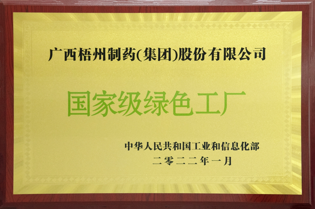 廣西梧州制藥(集團)股份有限公司榮獲2022年國家級綠色工廠