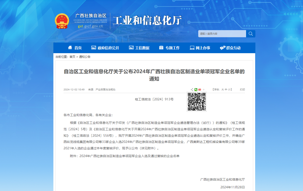 自2021年獲得“制造業(yè)單項冠軍”稱號以來,梧州制藥此次順利通過復核,充分體現(xiàn)了政府及行業(yè)相關部門對其技術創(chuàng)新、行業(yè)地位、品牌價值及企業(yè)綜合實力的高度認可。未來,公司將繼續(xù)秉持“以恒心、辦恒業(yè)”的理念,深耕細分領域,加大技術研發(fā)投入,推動產(chǎn)品升級和產(chǎn)業(yè)鏈延伸,進一步拓展市場,提升品牌影響力,為制造產(chǎn)業(yè)的發(fā)展貢獻力量。